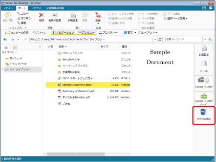 アプリケーションアウトプットボタンから文書を編集するためには、あらかじめアウトプットバーに外部アプリケーションが登録されている必要があります。アウトプットバーへの外部アプリケーションの登録については、次を参照してください。