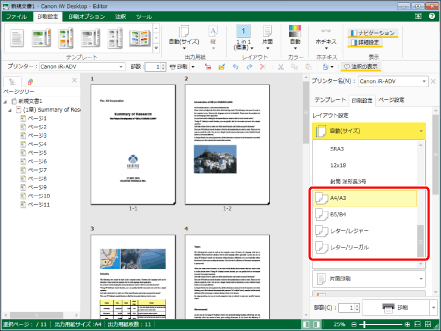 サイズの異なる用紙を組み合わせて印刷するには、この機能に対応したプリンターを選択する必要があります。
