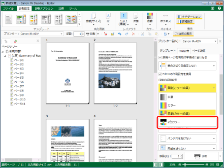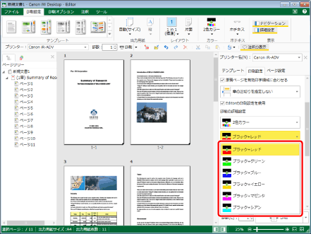 2色カラーモードを選択している場合、章、およびページごとにカラーモードの設定はできません。