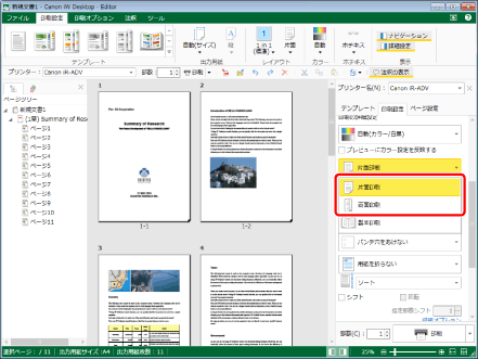 キヤノン製プリンターを選択し、詳細ウィンドウの[印刷設定]タブ、リボンのコマンド、ツールボタンのいずれかで、[Editorの印刷設定を使用]にチェックマークを付けた場合に設定できます。