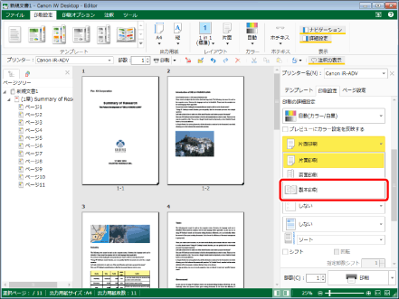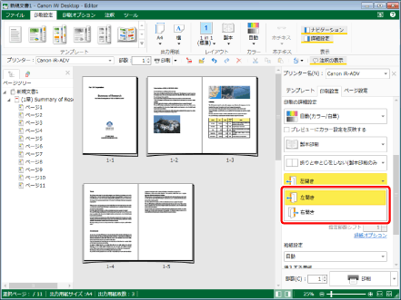 [製本印刷]が選択されると、出力用紙の向きの設定が変更されます。