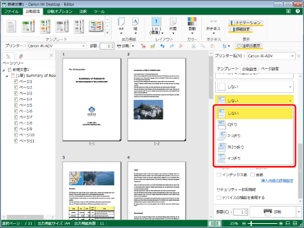 折りパターンの選択項目は、[プリンター]で選択しているプリンターの種類に応じて異なります。