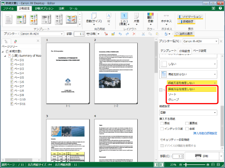 ページ順にまとめて、指定部数ごとに排紙する設定です。