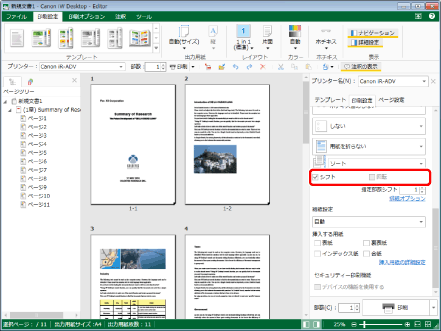 [シフト]にチェックマークを付けた場合に、部数を指定できます。ここで指定した部数ごとに位置をずらして排紙されます。排紙方法の選択で、[ソート]かつ[シフト]を選択した場合に、変更できます。