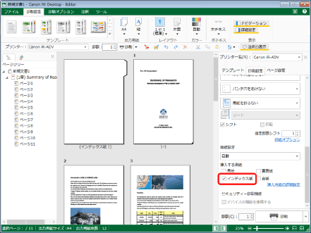 (挿入用紙)をクリックして、[インデックス紙]を選択します。