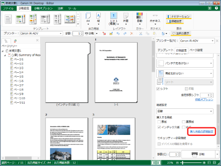 (挿入用紙)をクリックして、[挿入用紙の詳細設定]を選択します。