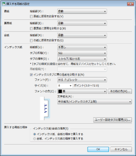 [挿入する用紙の設定]ダイアログボックスの設定に関する詳細は、次を参照してください。