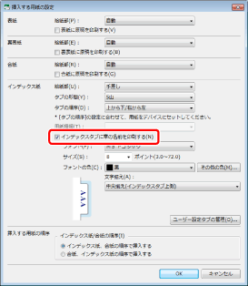 デバイスにセットするインデックス紙の順番を[タブの順序]の設定に合わせてください。インデックス紙の順番が違っていると、タブ部分に章の名前が印刷されなくなります。