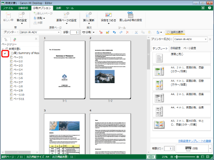 文書を作成する際に、オリジナル文書ごとに章が作成され、ナビゲーションウィンドウの[ページツリー]タブに章アイコンと章の名前が表示されます。