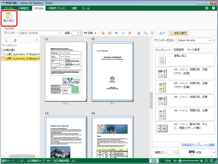 ツールバーのツールボタンでも同じ操作ができます。Desktop Editorのツールバーにツールボタンが表示されていない場合は、次を参照して表示させてください。