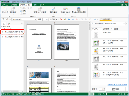 キヤノン製プリンターを選択し、詳細ウィンドウの[印刷設定]タブ、リボンのコマンド、ツールボタンのいずれかで、[Editorの印刷設定を使用]にチェックマークを付けた場合に設定できます。