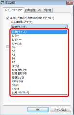 ユーザー設定用紙を使用する場合は、[プリンター]で選択しているプリンターにあらかじめユーザー設定用紙を登録してください。なお、使用しているプリンターによっては、一時的にユーザー設定用紙を登録できます。この場合はチェックマークを外していても、原稿サイズと同じサイズの用紙がプリンターに登録されていなければ、一時的にユーザー設定用紙を登録して出力します。