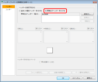 章単位のヘッダー/フッターの設定では、次の項目は選択できません。
