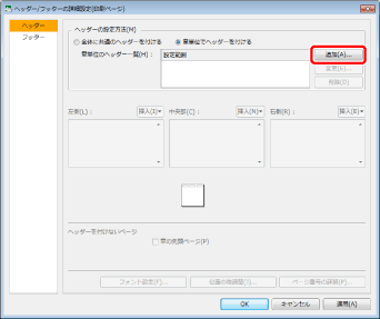 [印刷ページにヘッダー/フッターを付ける]、および[原稿ページにヘッダー/フッターを付ける]ともに操作方法は同じです。