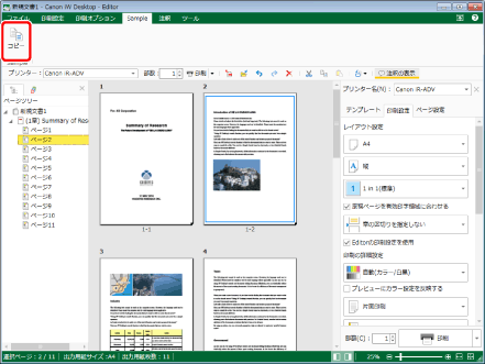 ツールバーのツールボタンでも同じ操作ができます。Desktop Editorのツールバーにツールボタンが表示されていない場合は、次を参照して表示させてください。