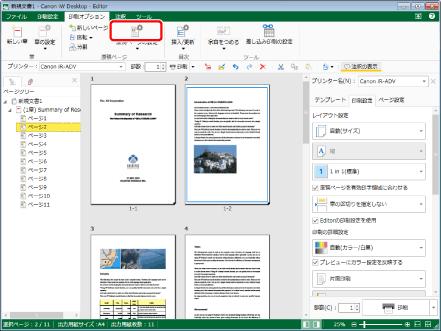 キヤノン製プリンターを選択し、詳細ウィンドウの[印刷設定]タブ、リボンのコマンド、ツールボタンのいずれかで、[Editorの印刷設定を使用]にチェックマークを付けた場合に設定できます。
