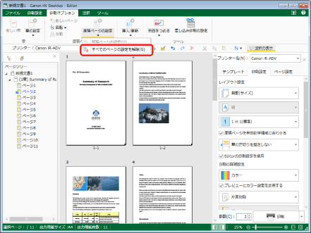 をクリックして、[すべてのページの設定を解除]を選択します。