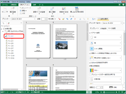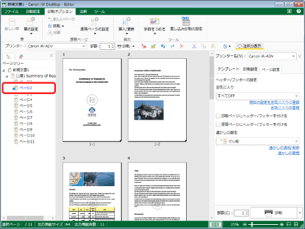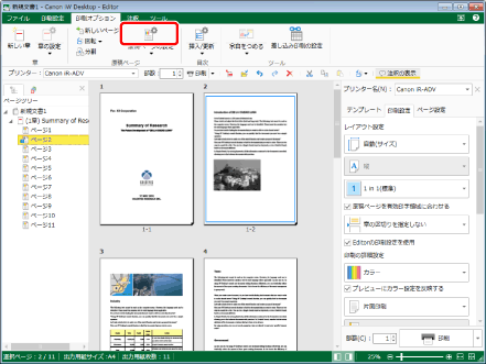 をクリックして、[原稿ページの設定]を選択