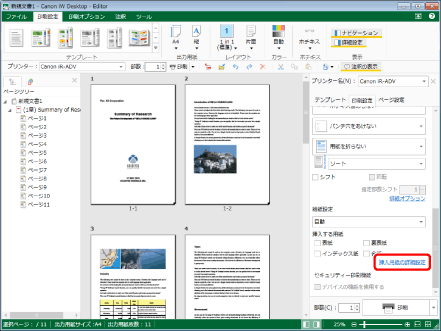 (挿入用紙)をクリックして、[挿入用紙の詳細設定]を選択します。