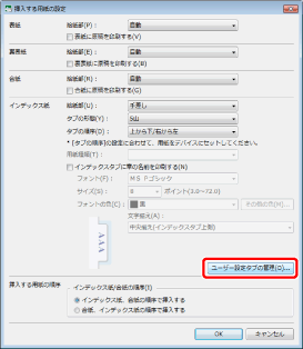 [タブの開始位置]、[タブの長さ]、および[次のタブまでの長さ]で指定した数値をもとに、用紙サイズを超えていないかをチェックしています。指定後、[OK]をクリックした際にエラーメッセージが表示される場合、次の数値が[出力用紙サイズ]で設定した用紙サイズの高さ以下になるように調整してください。