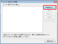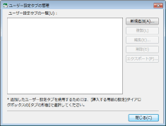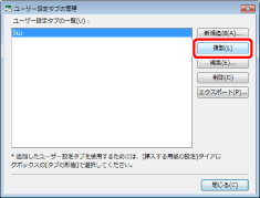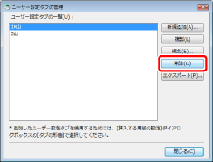 [ファイル]メニュー > [登録/管理] > [ユーザー設定タブの管理]を選択しても[ユーザー設定タブの管理]ダイアログボックスを表示できます。