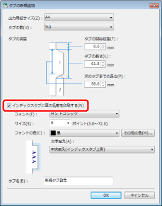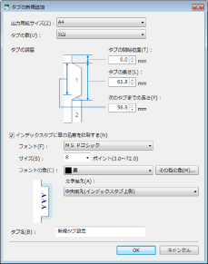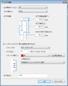 実際に印刷するインデックス紙のタブ部の寸法を指定します。