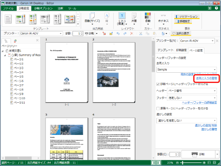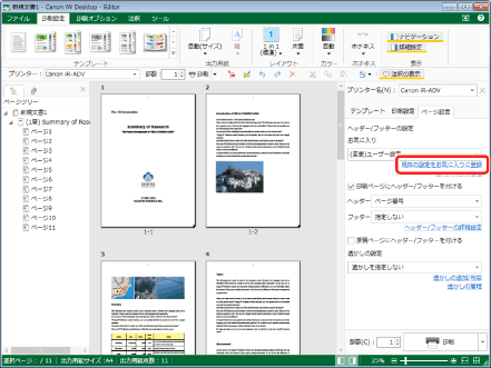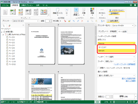 (お気に入り)をクリックして、[すべてOFF]を選択お気に入りを選択した後、ヘッダー/フッターの設定を編集した場合は、詳細ウィンドウ > [ページ設定]タブ > [ヘッダー/フッターの設定] > [お気に入り]のプルダウンリストの表示が[(変更)ユーザー設定]に変わります。