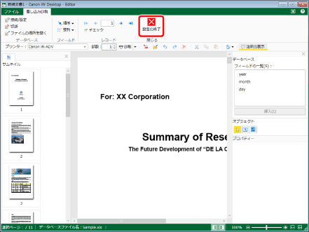 データベースとの接続情報が保存されたIWB文書を開いた場合は、差し込み印刷設定モードを起動すると、自動的にデータベースに接続され、差し込みデータが更新されます。