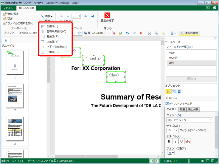 Desktop Editorの差し込み印刷設定モードで挿入したフィールドの位置を揃えられます。