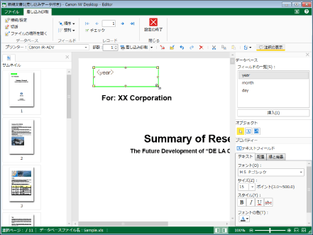 Desktop Editorで挿入した差し込みフィールドの大きさを変更できます。