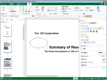 スライダー位置と数値は、楕円の透過性を表します。透過性を変更する場合は、スライダーを左右に動かすか、数値を入力します。