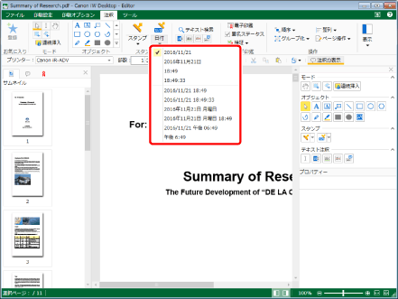 次のいずれかの操作を行うと、前回使用した日付スタンプを選択できます。