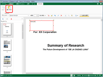 貼り付け先が次のページの場合、コピー、または切り取り元と同じ位置に注釈が貼り付けられます。