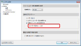 [システム設定] > [Editor] > [注釈] > [ユーザー名]