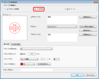 [スタンプ名]を入力しなかった場合は、[上テキスト]/[下テキスト]に入力した文字列から自動的に名前が設定されます。