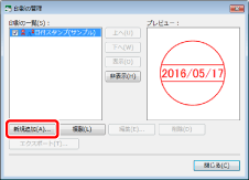 インストール時に自動的に登録された印鑑、およびその複製については、使用しているコンピューターのコントロールパネルの[地域と言語]で「日付」の「データ形式」として設定された「短い形式」、または「長い形式」(いずれか選択した形式)が、常に反映されます。ただし、ユーザーが新規登録した印鑑は、登録時に選択した形式が保持されます。また、新規登録した印鑑の日付形式を変更すると、変更時に選択した形式で更新されます。