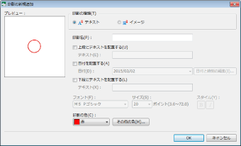 [テキスト]を選択した場合、円囲み+指定した文字列+日付の印影を登録できます。