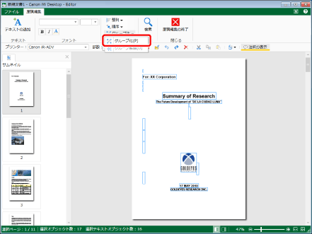 ツールバーに表示させた注釈モード用のツールボタンでは、オブジェクトのグループ化/グループ化解除はできません。