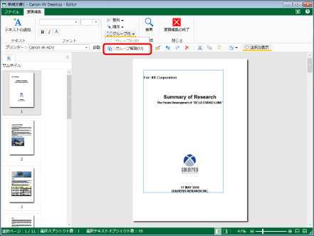 (グループ化)をクリックして、[グループ解除]を選択します。