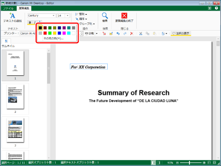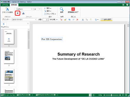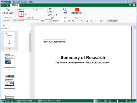 変更した設定内容は、選択したすべてのテキストオブジェクトに適用されます。変更しなかった項目については、それぞれのオブジェクトの既存の設定のままです。
