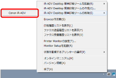 (メイン)を右クリックして、[iR-ADV Desktop 簡単印刷ツールの削除]を選択し、削除する簡単印刷ツールを選択します。