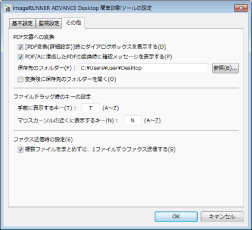 PDF文書に変換した際の、保存先の設定などができます。