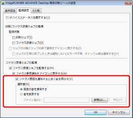 [ファクス受信通知をアイコンに表示する]にチェックマークを付けると、ファクス受信の完了後にメッセージが表示されます。受信メッセージについては、次を参照してください。