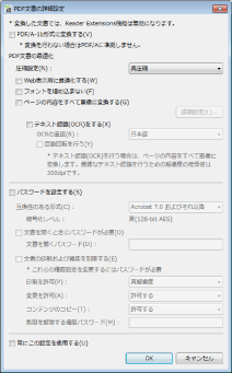 セキュリティーのために、PDF文書を開いたり、印刷、編集を制限したりする場合にチェックマークを付けます([PDF/A-1b形式に変換する]にチェックマークを付けた場合は、設定できません)。