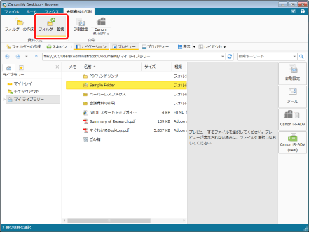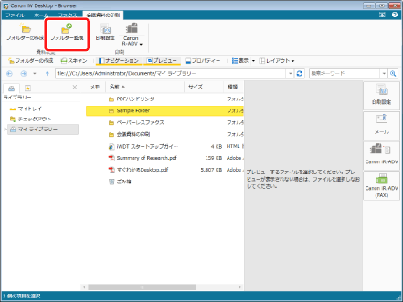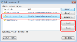 [監視フォルダーの一覧]ダイアログボックスを表示させて、監視対象フォルダーを設定することもできます。設定方法の詳細は、次を参照してください。