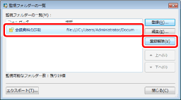 [監視フォルダーの一覧]ダイアログボックスを表示させて、フォルダーの監視を解除することもできます。解除方法の詳細は、次を参照してください。