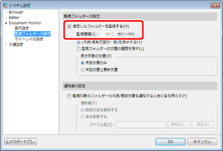 フォルダーの監視間隔を1~99分の間で設定します。詳細は次を参照してください。