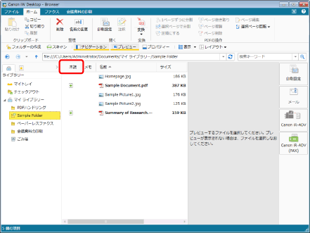 Desktop Browserのファイルリストビューウィンドウで未読文書をソートできます。