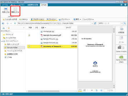 ツールバーのツールボタンでも同じ操作ができます。Desktop Browserのツールバーにツールボタンが表示されていない場合は、次を参照して表示させてください。