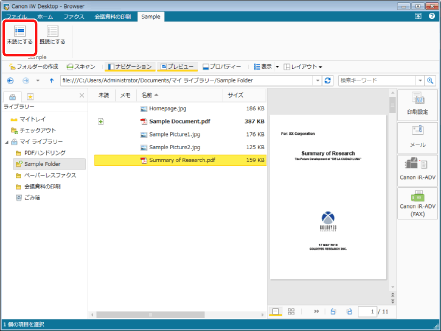 [未読文書を表示したときに、自動で既読にする]にチェックマークを付けると、未読文書を操作(プレビュー表示、開く、印刷、ファクス送信、メール作成など)した場合に、自動で既読になります。